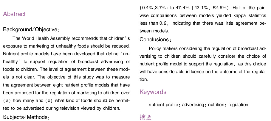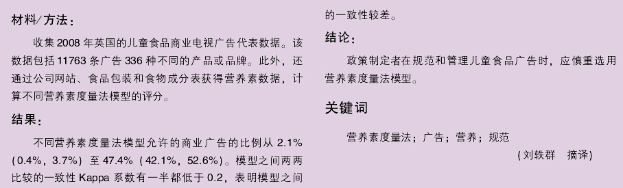 如何选择营养素度量法模型规范儿童食物广告 的重要性—针对性数据的比较
